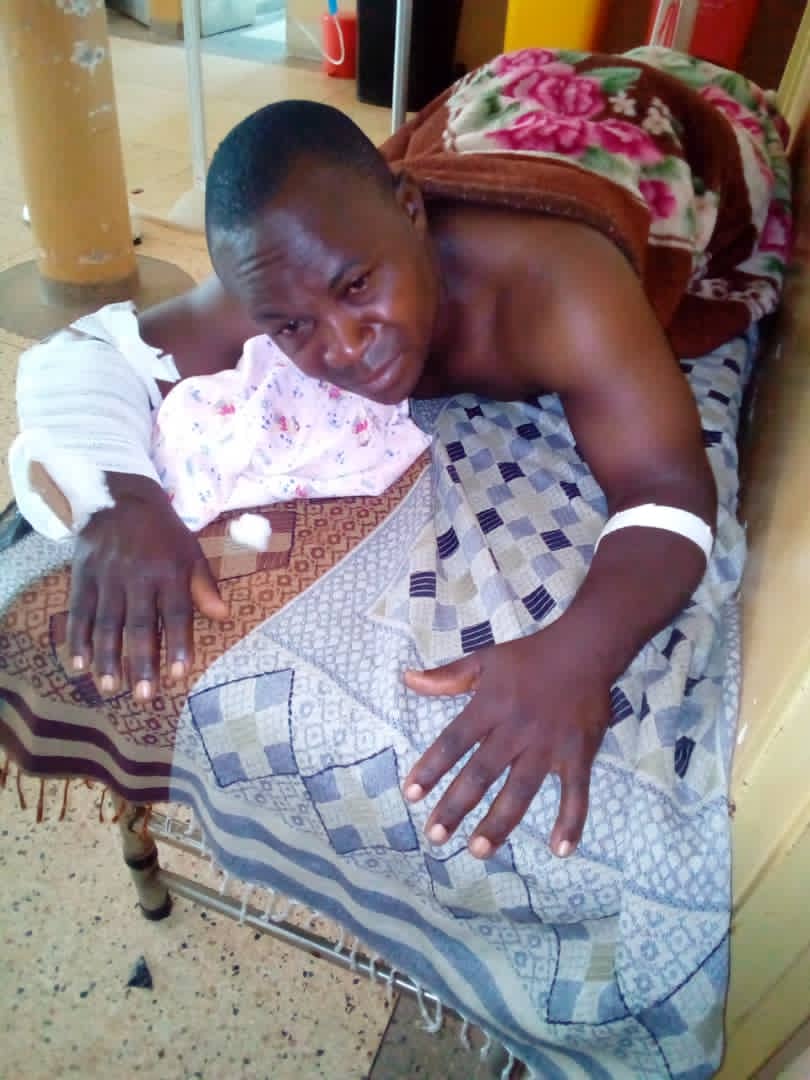 Matovu is now under medical attention at Mityana Hospital. He lives in serious pain from his broken arm, back and sustained other serious injuries in that he cannot sit.