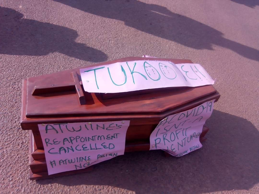 The coffin had placards inscribed with words attacking Dr. Atwine. Like “COVID-19 is not a profit venture,” In September, the two suspects were released on bail.