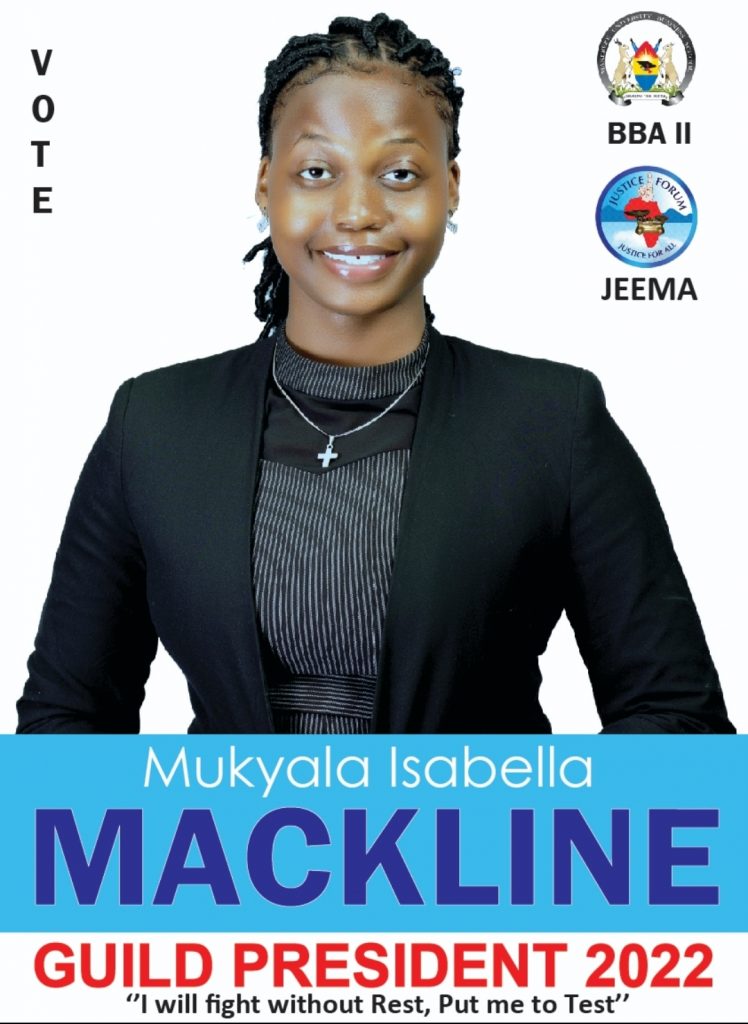 Mukyala Mackline is an iron lady who is committed to changing the politics of MUBS if elected, she is an eloquent and energetic young lady pursuing a Bachelors’ in Business Administration in her second year.
