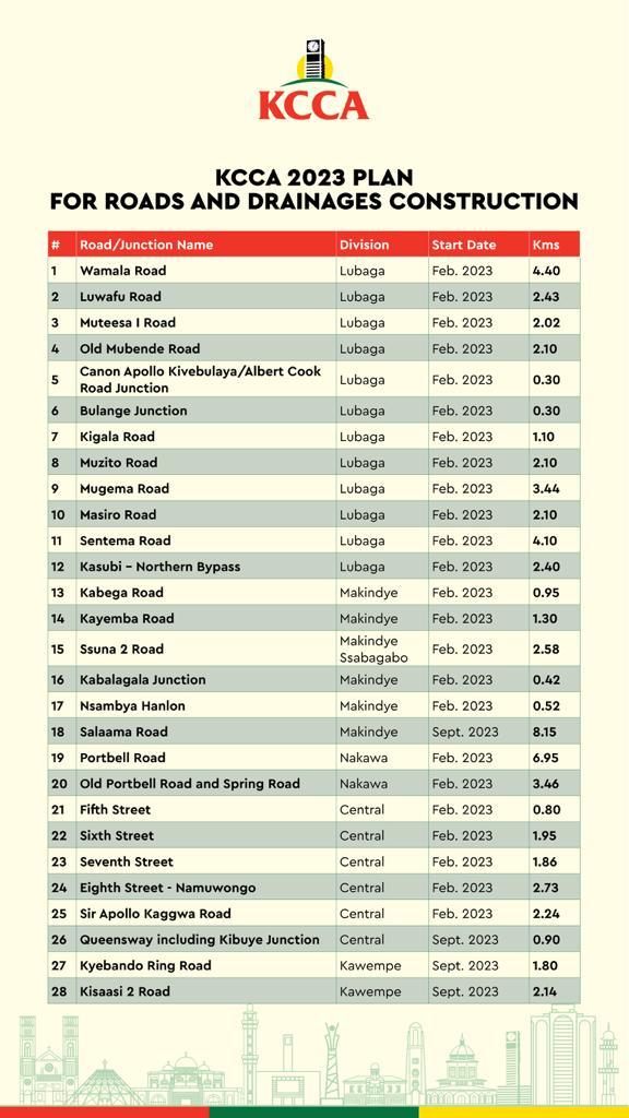 Majority of these roads are expected to be reconstructed starting next month under the project named Kampala City Road rehabilitation Project financed by the African Development bank to a tune of OVER 288 MILLION US dollars.