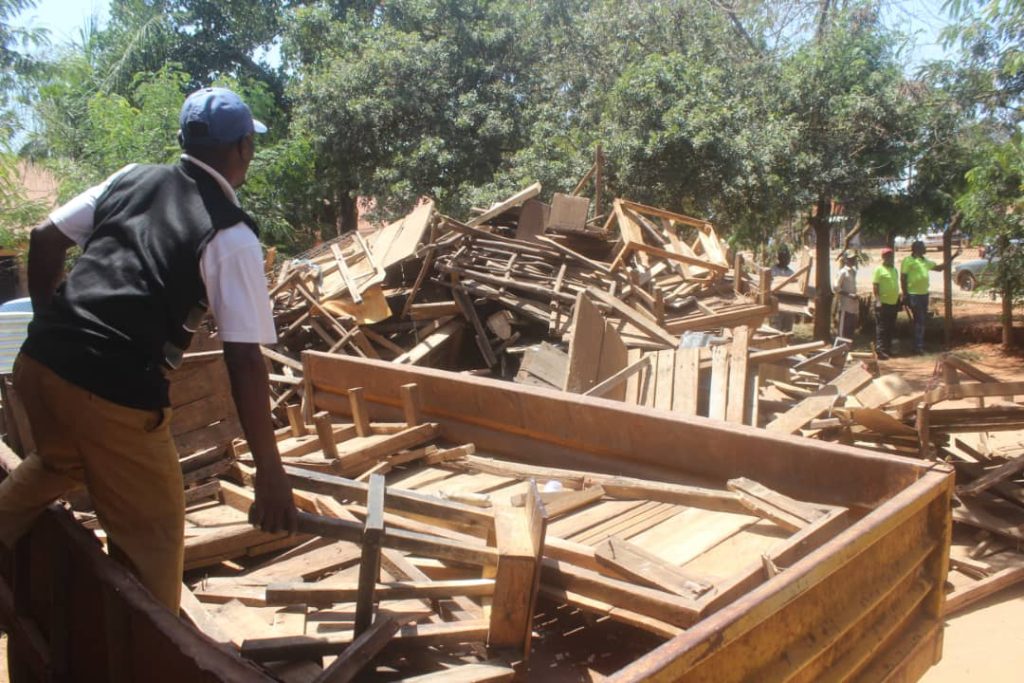 With assistance of police, the municipal enforcement team has cleared vendors from different streets connecting to Saza road and main highway which include ,Aso ,oboja and Ngobi road and several stalls confiscated .