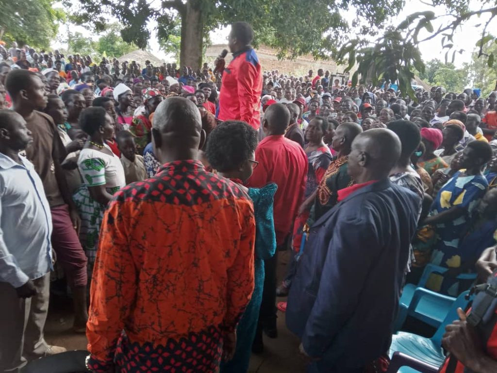 On Day 2 of the Oyam North by-election campaigns, Dr. Eunice Otuko Apio the UPC Candidate received a very warm reception from the people of Acaba Sub-county as she was conversing for votes. She was flanked by the Party Secretary General Hon. Ebil Fred, Regional Vice Chairperson of Lango Mr. Chris Ongom, and former LC V Chairperson of Oyam Hon. Adea Nelson among other leaders.