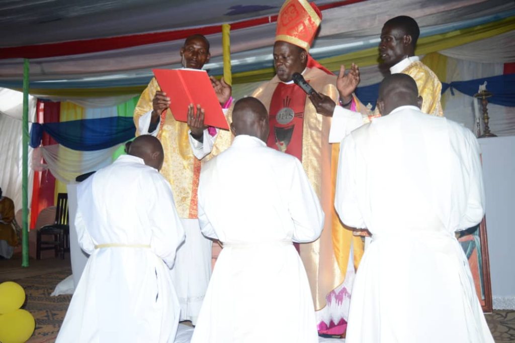 While the six were ordained Deacons and these include: Emmanuel Okiria from Katakwi district, Ferdinand Pike Lugobe from Wakiso district, Ben Nagiloyi from Budaka district, Francis Keedi from Butembo district, Moses Kirya from Pallisa district and Jacques Kathembo North Kivu from DR Congo.