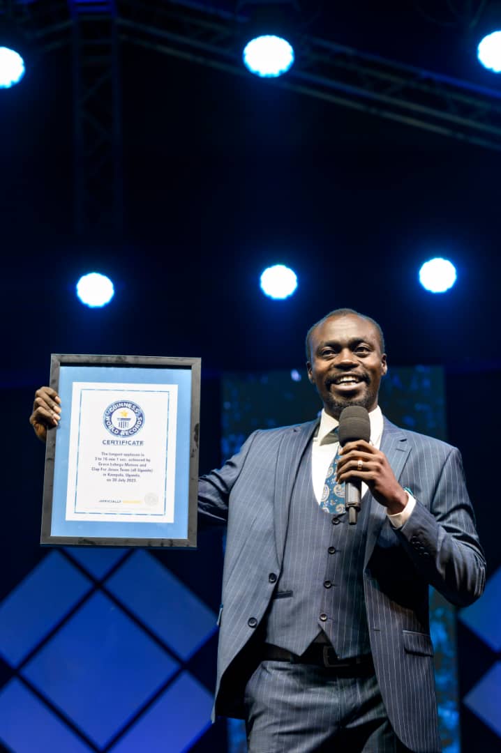 Apostle Grace Lubega and his team clapped their way into the history books for a record breaking 3hours, 16 minutes and 1 second. This record attempt has now been officially confirmed by the Guinness World Records.