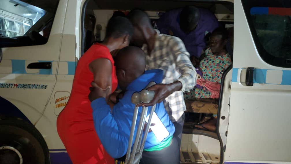 A visibly exhausted Nyeko Robert Bob, the Matato (Taxi) driver from Lira District who was hired to driver the children from northern Uganda to Kampala said it only takes a person with a kind heart to handle the children with Hydrocephalus since they need extra care and attention.