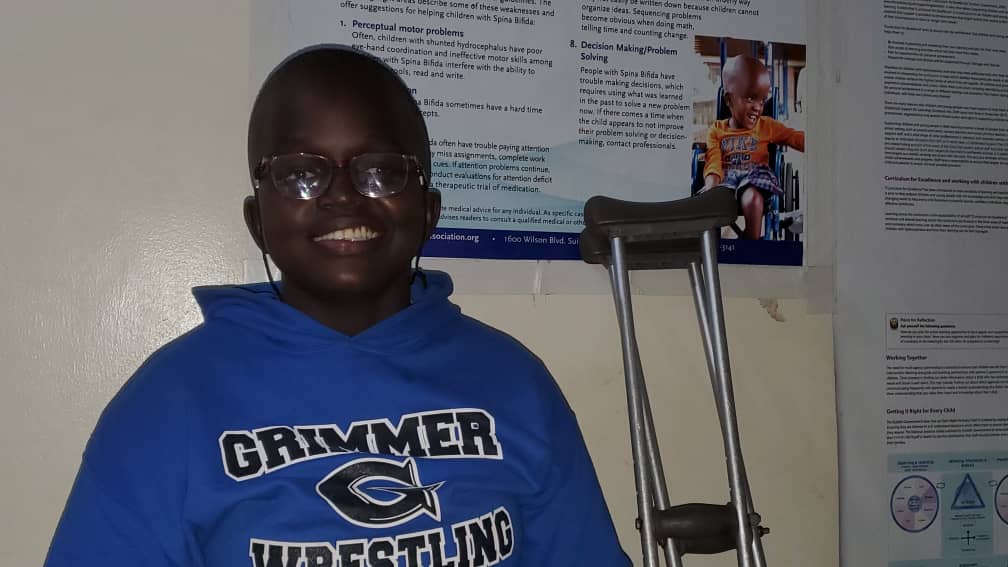 Jovia Lanyero a 16 year old student of Over Champion Jesuit College Gulu in boarding section from Awich village which is 8km away from school, with the dream of becoming a lawyer to advocate for the rights of children with disabilities and also build for them a home, said that after getting the wheel chair with the help of Spina bifida and Hydrocephalus association of Uganda SHAU and Corsu hospital in Entebbe, her movement to school, bathroom, church and others places has been made easier since she has been crawling on ground especially to bathe while other times she has been using the walking crutches for movement which is uncomfortable for her and thus the wheelchair and tender hearts of the donors and SHAU is such a motivating factor for her to pursue her dreams and turn them into a reality.