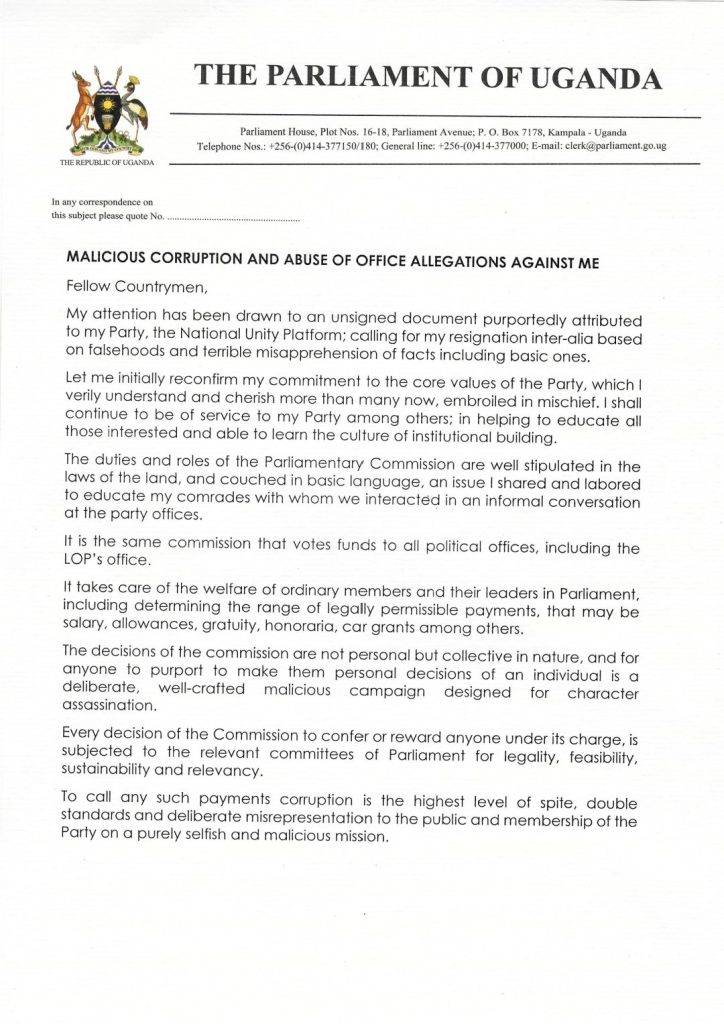 Mpuuga has clarified that the decisions of the commission are not personal and for anyone to purport to make them person decision of an individual is a deliberate, well-crafted malicious campaign design for character assassination since it’s the commission that votes funds to all political offices, including the LOP’s office.