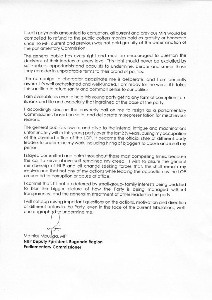 According to the press statement from NUP, during the meeting, Mpuuga admitted that he indeed took part in the said allocation of money and apologized for the same.