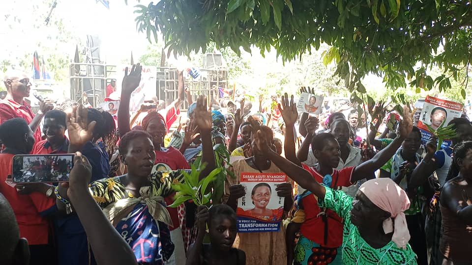 The above with their party flag bearer Sarah Aguti traversed Agwata Sub County where they were welcomed by a mammoth of their supporters.