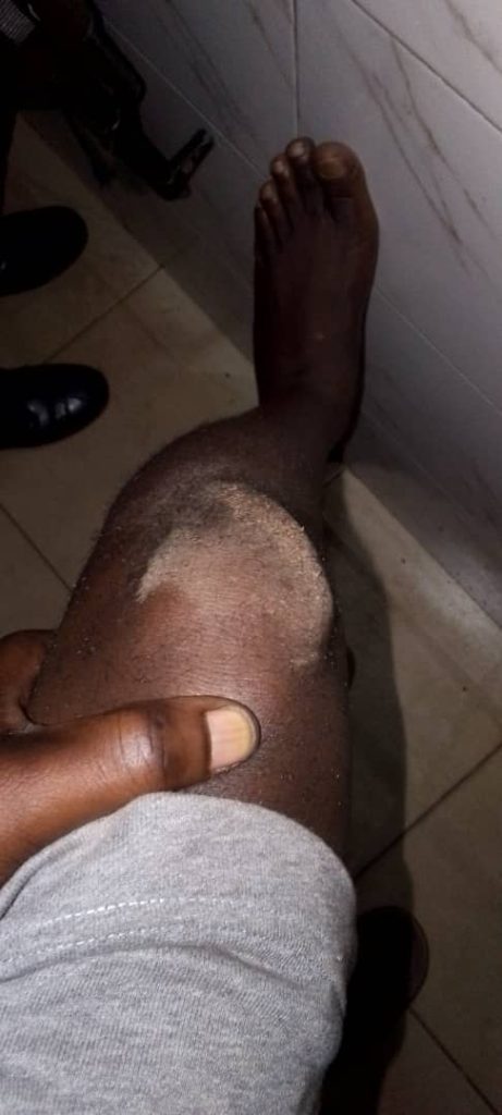 The incident unfolded around midnight on Daudi Waiswa Road in Iganga central division, where Grace was approached by three armed men and one with a UPDF jacket traveling in a Mark X with registration UBL 239 X. According to Grace, the men were dressed in civilian clothing and swiftly parked near his vehicle. They forcefully called him out of his car and proceeded to assault him sustaining injuries especially on his legs..