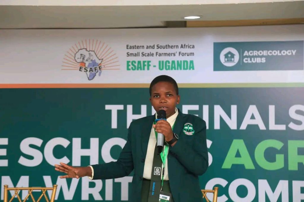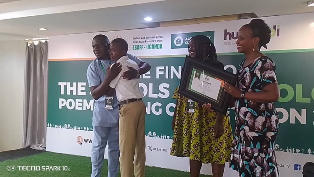 A Senior Three (S.3) student from St. Joseph’s Naama Modern Secondary School in Mityana, John Paul Nkwanga, emerged as the best winner in the 2024 National Agroecology Poem-Writing Competition, organized by the Eastern and Southern Small-scale Farmers Forum (ESAFF) Uganda. The 16-year-old student’s poem, “Climate Justice,” captivated judges with its compelling message on the unequal impacts of climate change, the need for equitable climate action, and the importance of sustainable farming practices in safeguarding the environment.