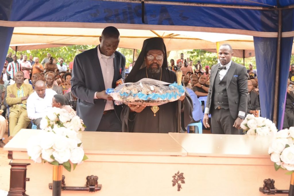 The funeral service was marked by an emotional requiem mass led by Bishop Jacinto Kibuuka of the Evangelical Orthodox Church, who was joined by Msgr. Francis Xavier Mpanga, the Vicar General of the Roman Catholic Church in the Kasana Luwero Diocese. Msgr. Mpanga delivered condolences on behalf of Bishop Lawrence Mukasa, offering a financial contribution of two million Ugandan shillings to support the burial expenses.