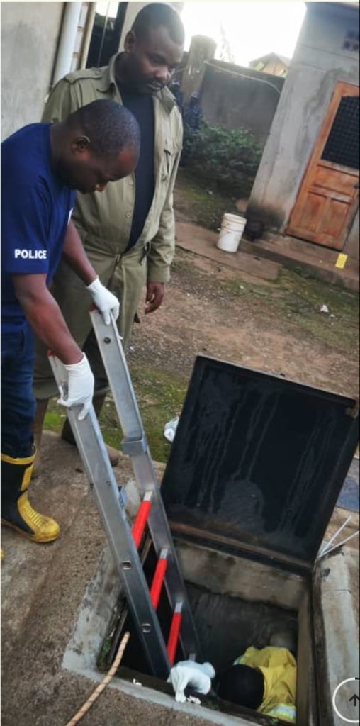 Patrick Onyango Kampala metropolitan police spokesman says police homicide department from Nsangi have cordoned off the area and his body was retrieved from the septic tank and rushed to city mortuary Mulago for further postmortem.