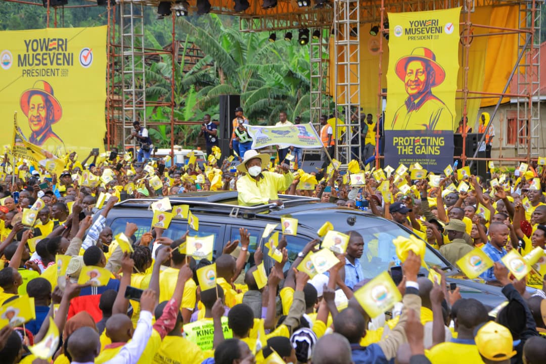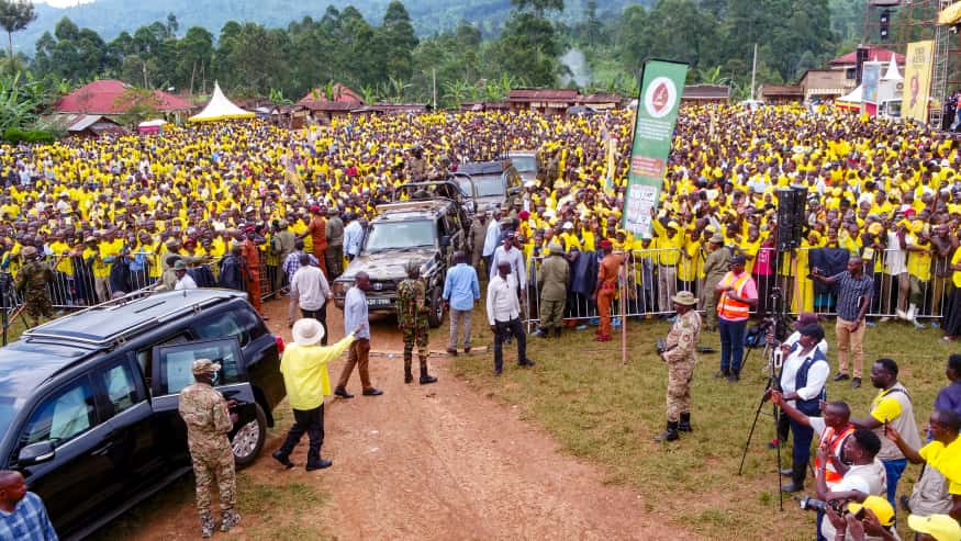 Addressing supporters during an NRM Presidential campaign rally at Bukigai Primary School playgrounds in Bududa District, President Museveni urged residents to vote for NRM legislators who understand the party ideology and embrace the principle of prioritization in development planning.